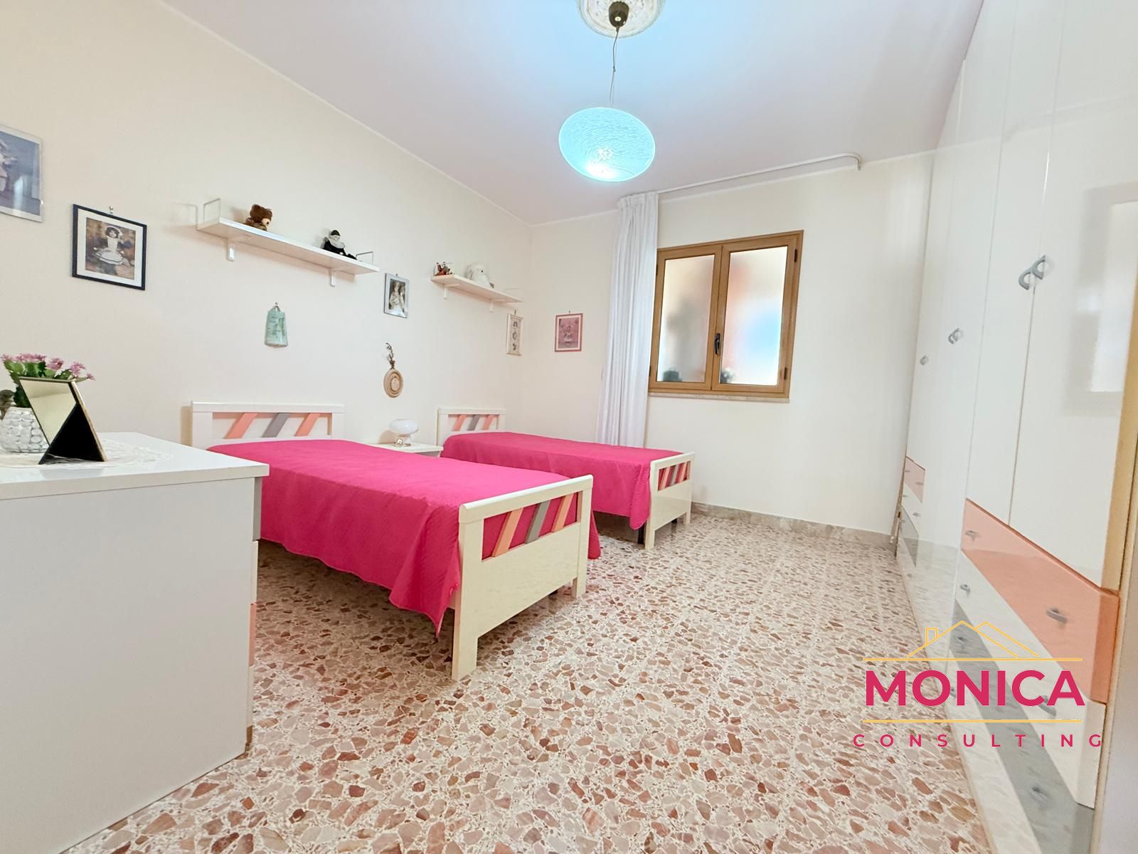 La zona notte comprende due camere da letto, due bagni e un ripostiglio, offrendo ambienti confortevoli e ben organizzati. L’appartamento presenta una pavimentazione in marmo, impianti idrici ed elettrici completamente rinnovati e infissi in PVC effetto legno con doppio vetro. È inoltre dotato di impianto a metano e di due condizionatori che garantiscono comfort in ogni stagione.