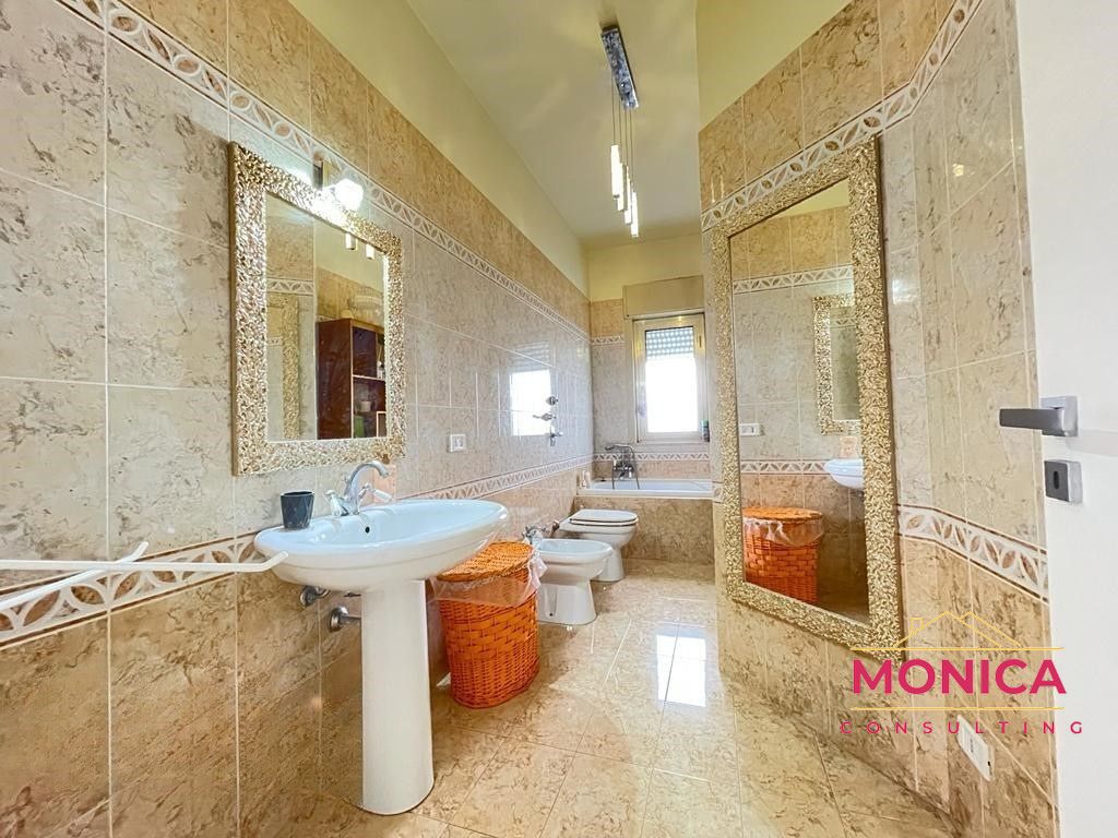 L’abitazione è ubicata al 5° piano di un ottimo contesto condominiale ed è composta da un ingresso su un ampio salone con balcone, una cucina con una veranda coperta (con cucinino), una sala da pranzo, due camere da letto matrimoniali di cui una con cabina armadio, una cameretta, un riposto e due bagni di cui uno con doccia e l’altro con vasca.