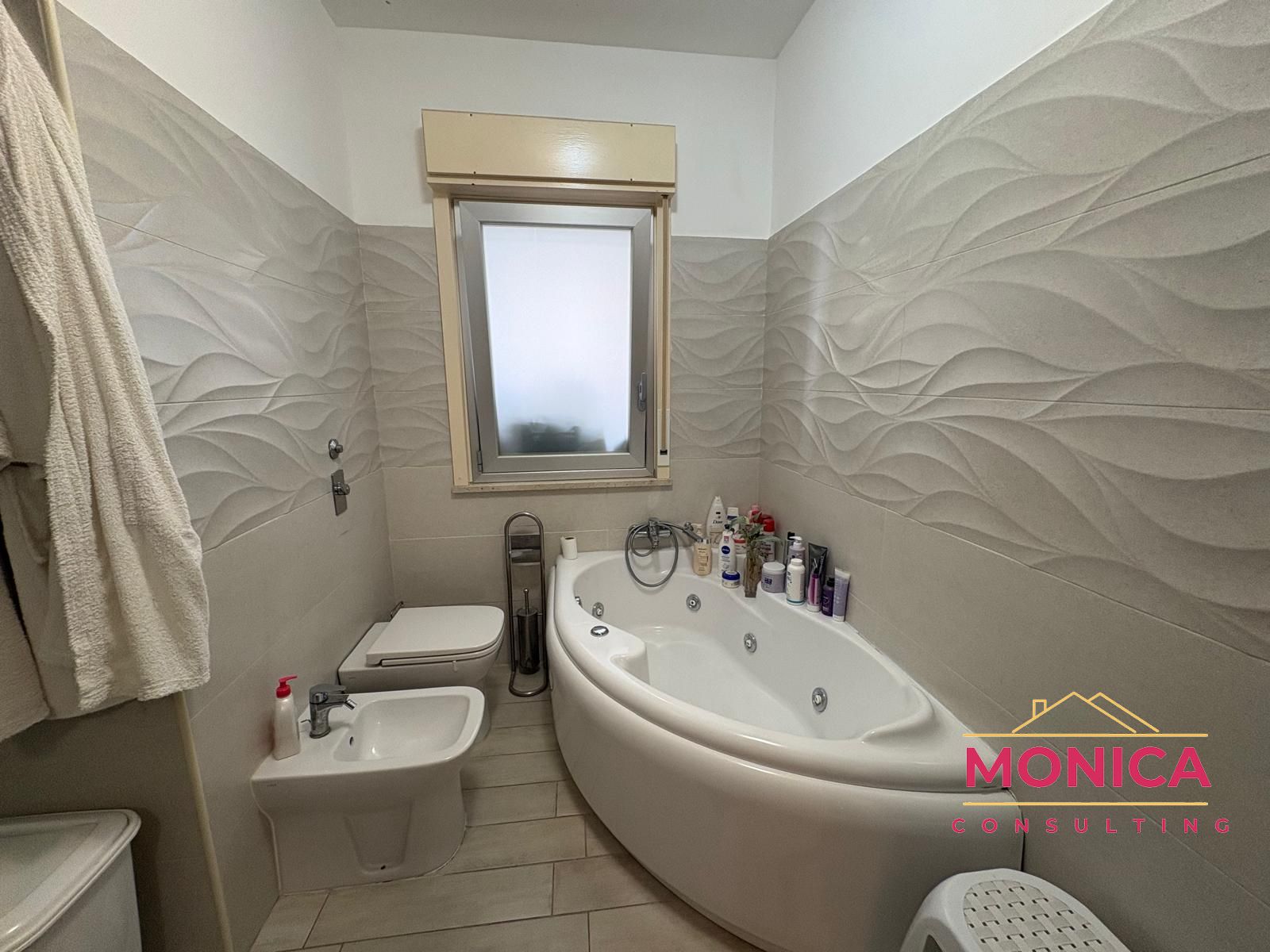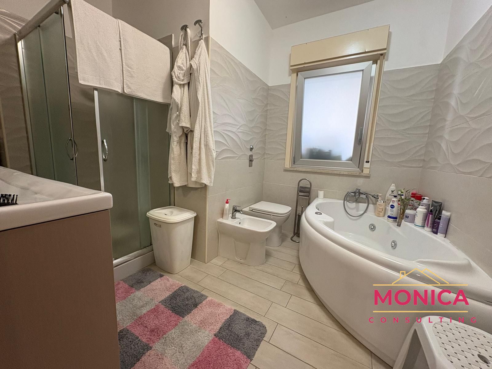 L’immobile, di circa 120 mq, si presenta in ottime condizioni ed è composto da un ingresso su un ampio e luminoso ambiente unico cucina–soggiorno. Dalla cucina abitabile si accede a una comoda veranda, dalla quale è possibile godere di una gradevole vista mare; all’interno della stessa troviamo un cucinino e una funzionale zona lavanderia, nella quale è stato realizzato anche un secondo servizio.